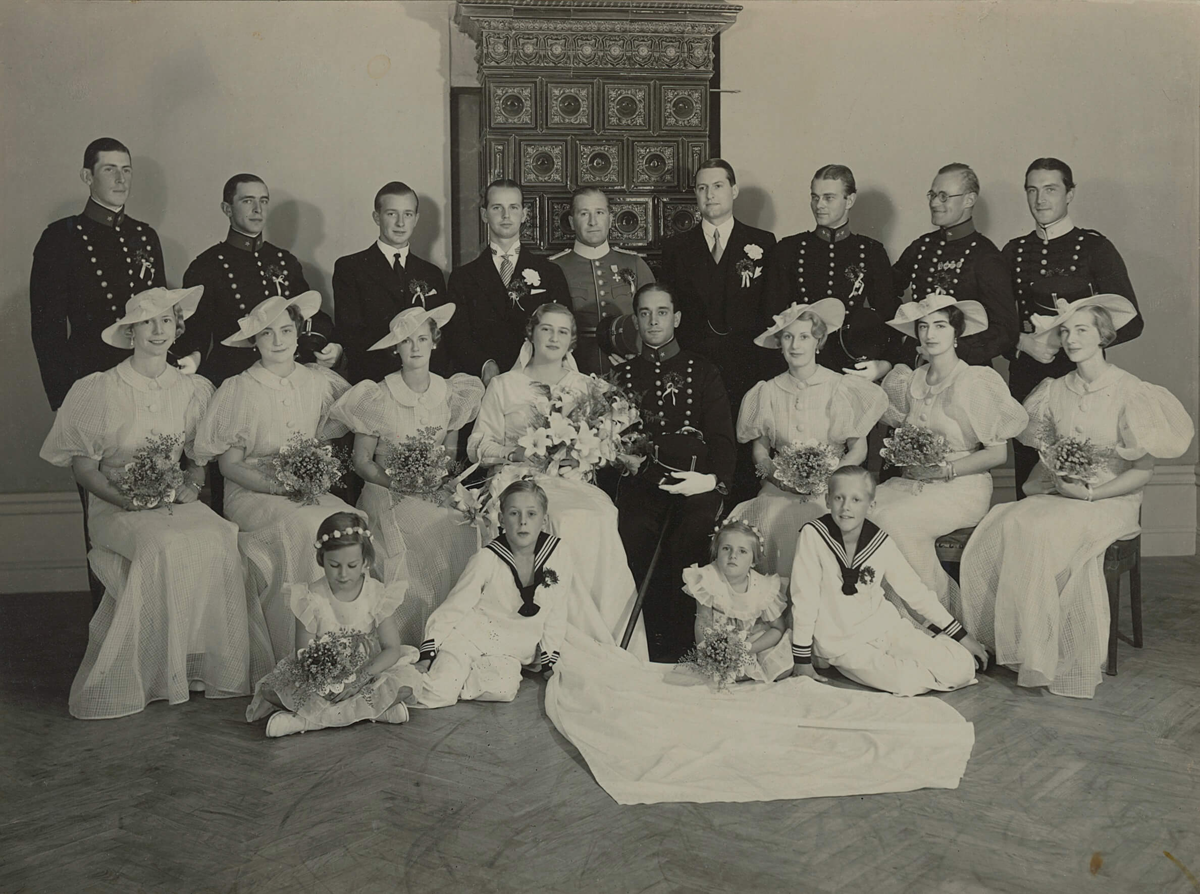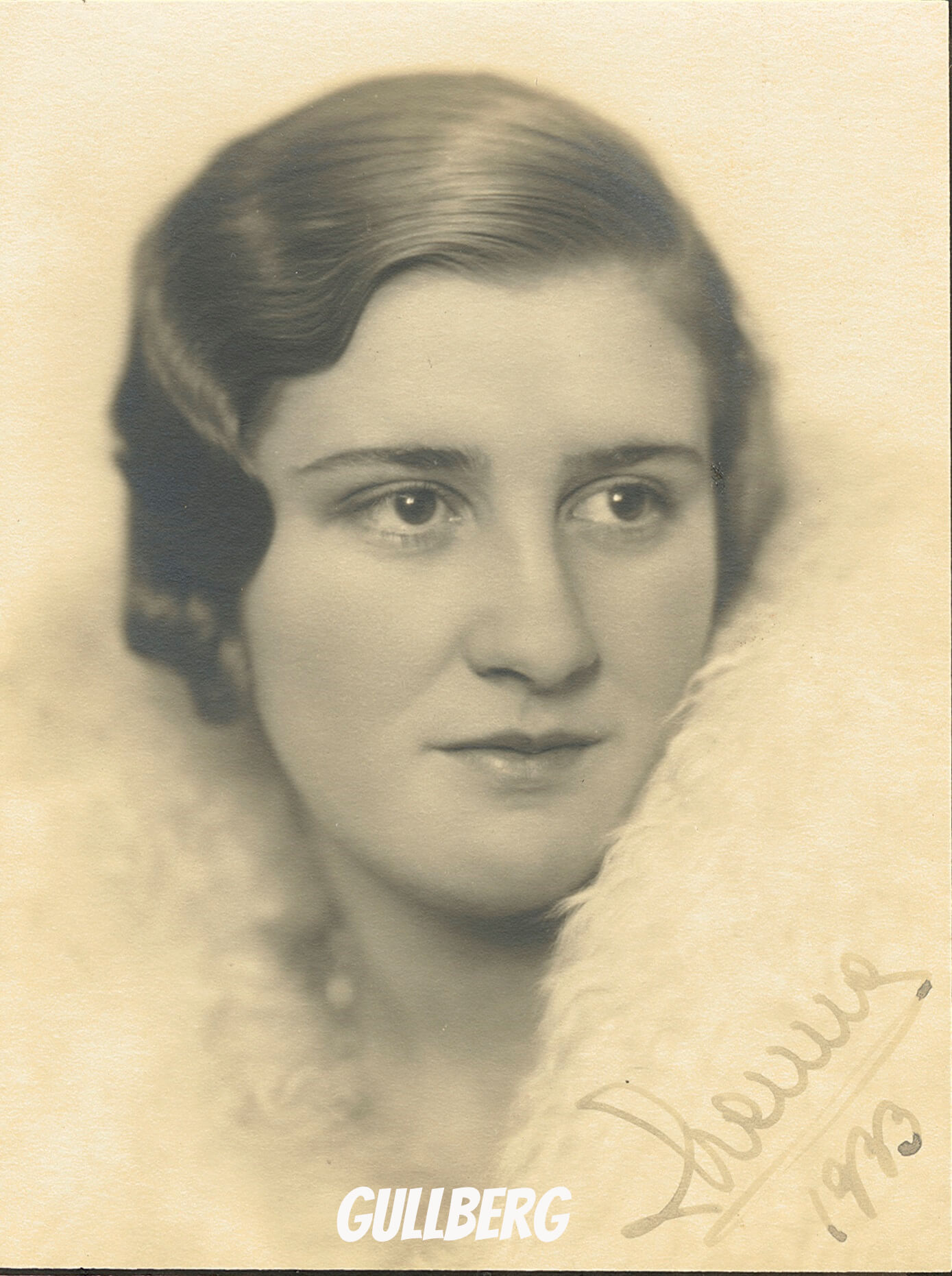 Till höger sittandes Adrienne Gullberg gift Strandh, stående sonen Ove (gift med Adriennes kusin Birgitta Thernström) och sonsonen Fredrik, i knät Adriennes sonsonbarn.